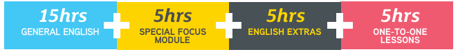 Our most popular Premium course: in addition to your 5hrs of 1-1 tuition, your morning class will help you improve your everyday English for travel, work or social purposes and you will have the option of either attending English Extra classes or supervised self-study.