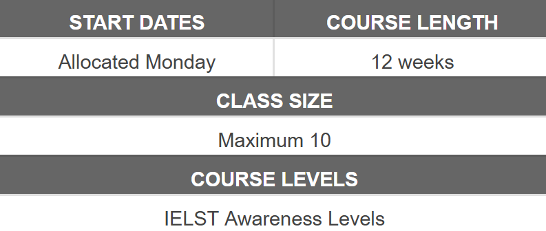This course is for students with no knowledge of the IELTS test and a low-level of general English.